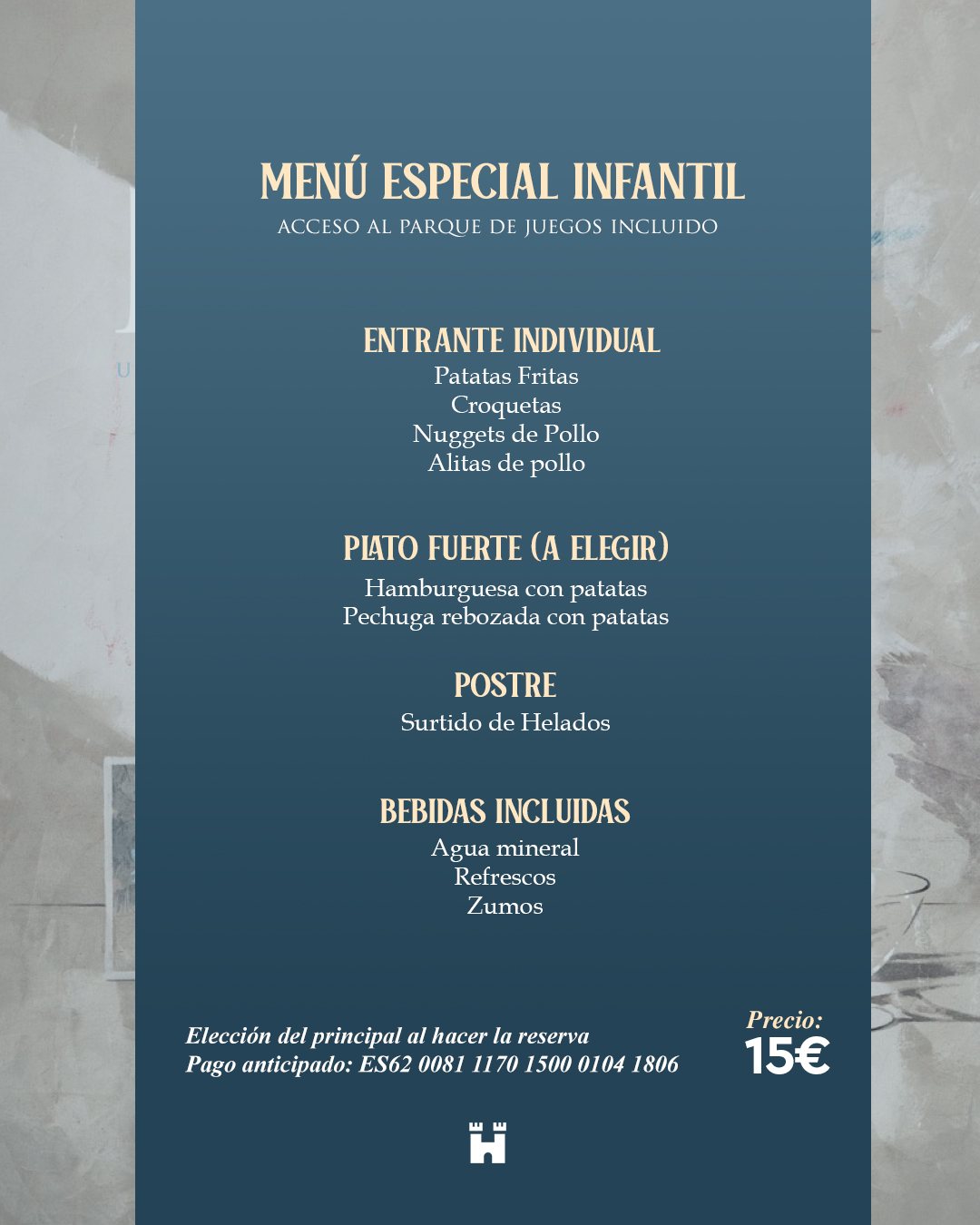 menu infantil - precio 15€ (incluye acceso a parque infantil)