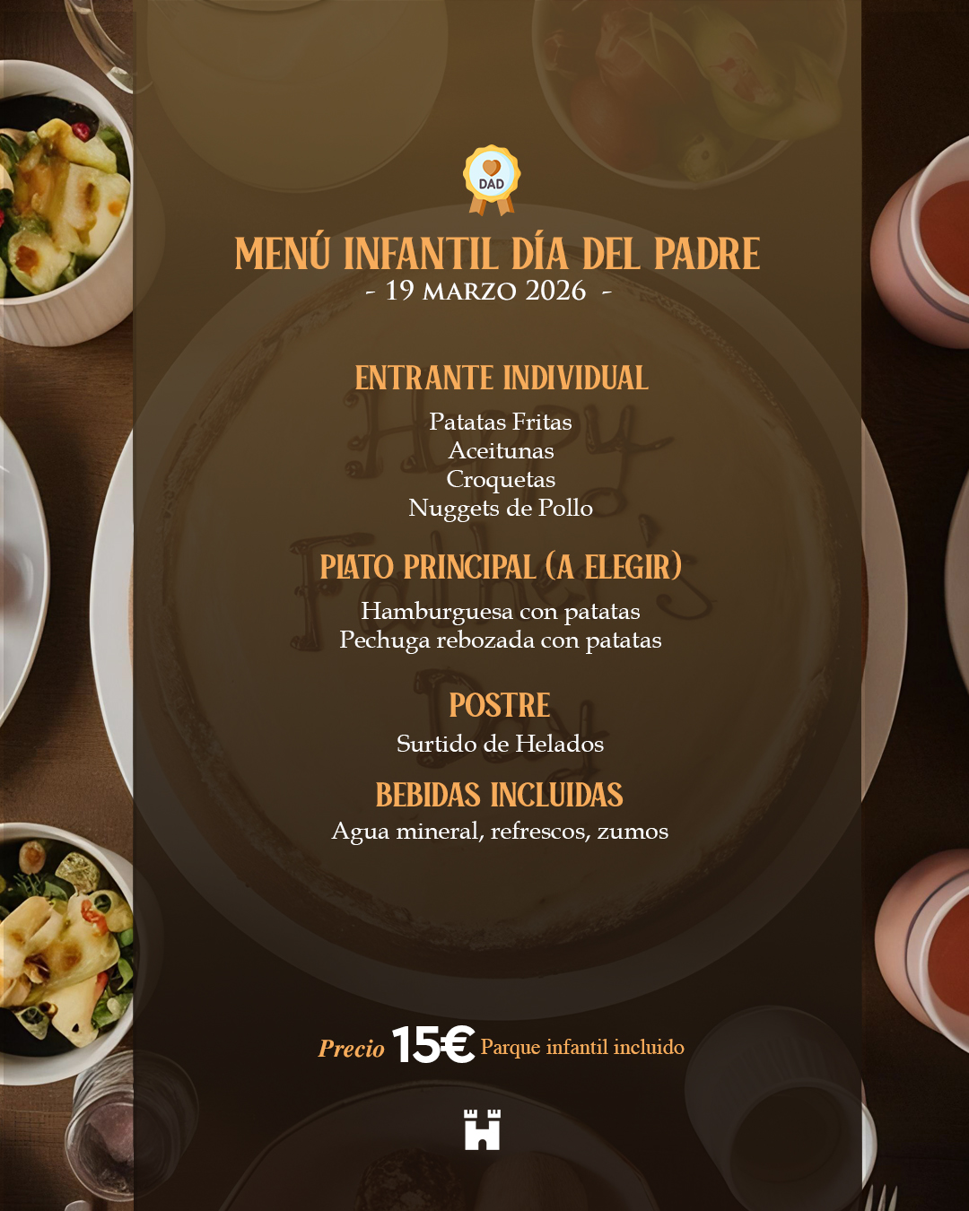 - El menú del Día del Padre sólo se podrá reservar para el miércoles 19 de marzo.